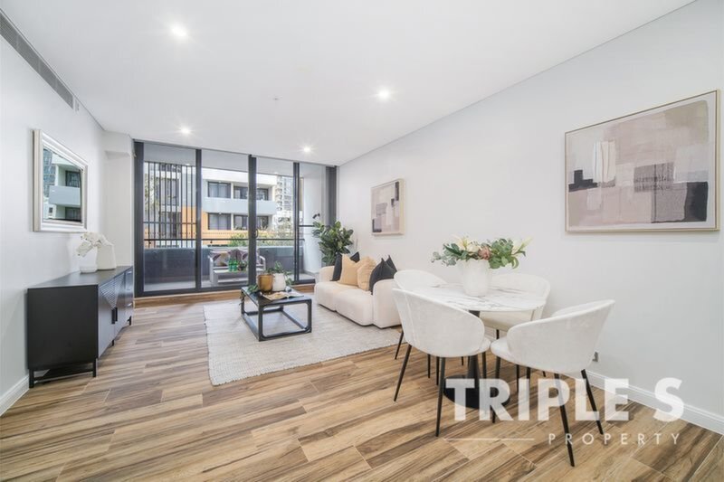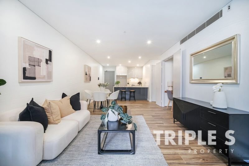 The open-plan living and dining area flows effortlessly onto a private balcony, creating an ideal space for entertaining or simply relaxing in the fresh air. A sleek, well-appointed kitchen features quality appliances and a stylish benchtop, making everyday cooking both practical and enjoyable.