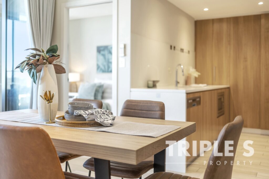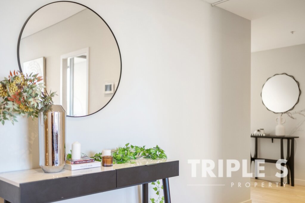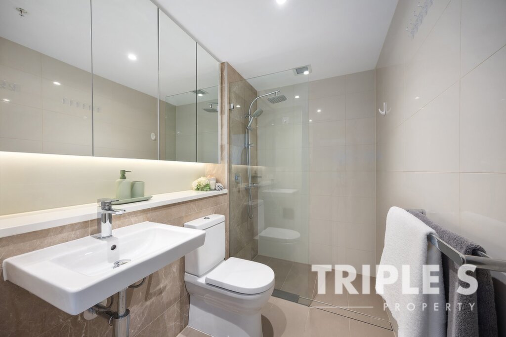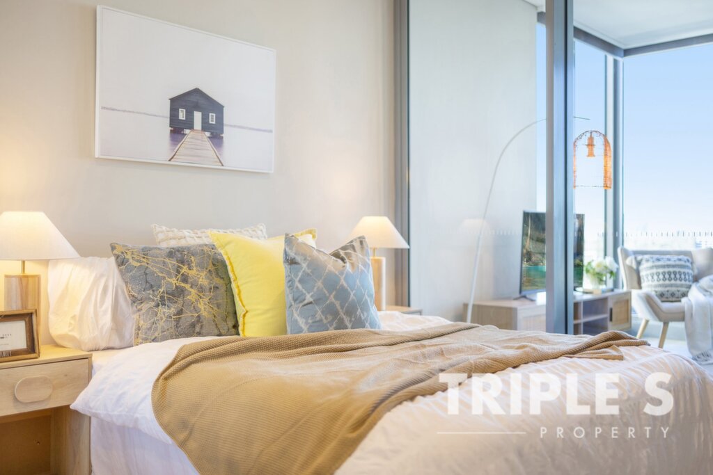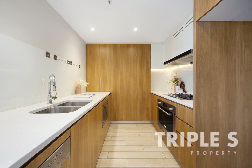 Waterfront lifestyle living Elegant finishes throughout the sunlit interior; timber and tile flooring all across Gourmet ILVE gas kitchen with abundant storage space 2 generous bedroom with built-in robes Modern bathroom with sleek fixtures, floor-to-ceiling marble wall and frameless shower Concealed internal laundry installed with Electrolux washing machine and dryer Security video intercom system; Split system air-conditioning; NBN internet connection Secure basement parking with allocated storage cage