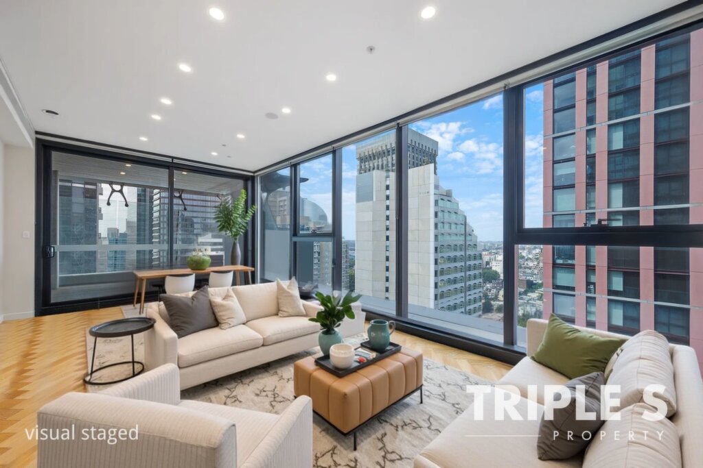 The 235-metre skyscraper will be the tallest residential tower in Sydney's CBD Expansive combined living and dining area, kitchen with built-in fridge Generous separated bedrooms with built-in and open views Gourmet kitchen with stone finished island bench and quality appliances. Stylish bathrooms Internal laundry with washing machine and dryer Resort facilities include outdoor heated swimming pool, sauna, gym, cinema. High security access, with a concierge desk in the lobby