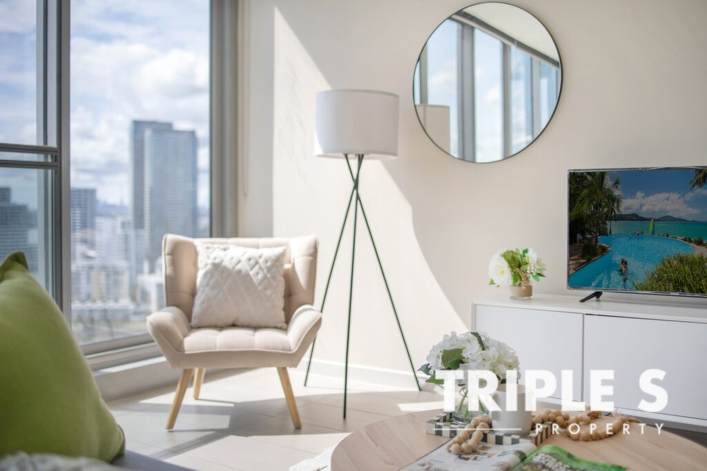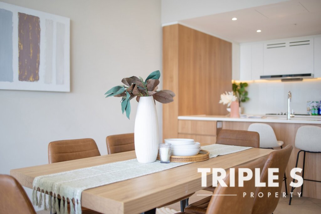 Massive sunroom with retractable door for space alterations and entertainment Spacious open-plan interiors with neutral-toned superb finishes Gourmet kitchen with stonetop bench & extra legroom as convertible dining bar Executive bedroom with built-in wardrobe Modern bathroom with shiny sleek fixtures and frameless shower Concealed internal laundry & plentiful storage cupboard Air-conditioning; Security video intercom system; NBN internet connection One allocated underground carpark and storage cage