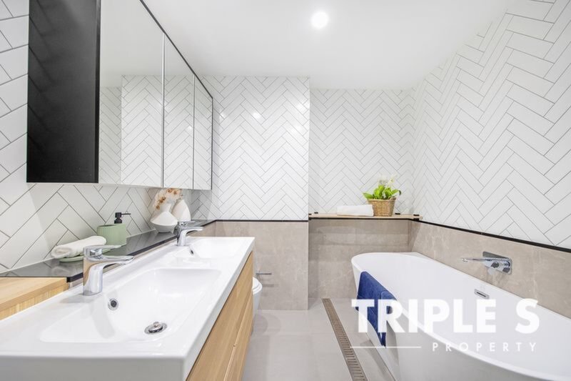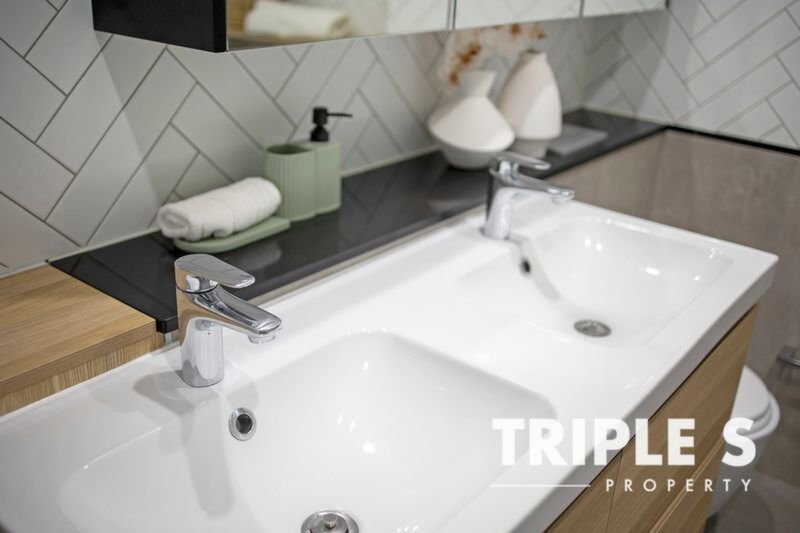 The master ensuite has been reimagined with a double vanity, offering both style and practicality. Outdoors, a custom-built deck in Ekodeck composite wood invites relaxed entertaining, complete with astroturf and integrated BBQ cabinetry that is perfect for hosting family and friends year-round.