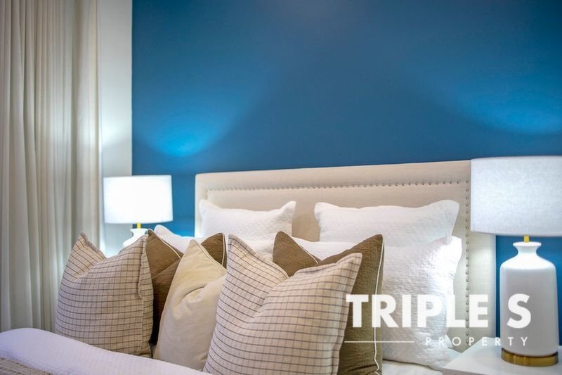 The kitchen is a statement in sophistication, featuring upgraded cabinetry with pot drawers, a sleek breakfast bar, and premium appliances including an Asko induction-gas cooktop, steam oven, microwave combo, Bosch dishwasher, and a new sink and tap. Smart Philips HUE lighting in every room allows for effortless ambiance control, while Marlow and Finch curtains add a layer of understated luxury.