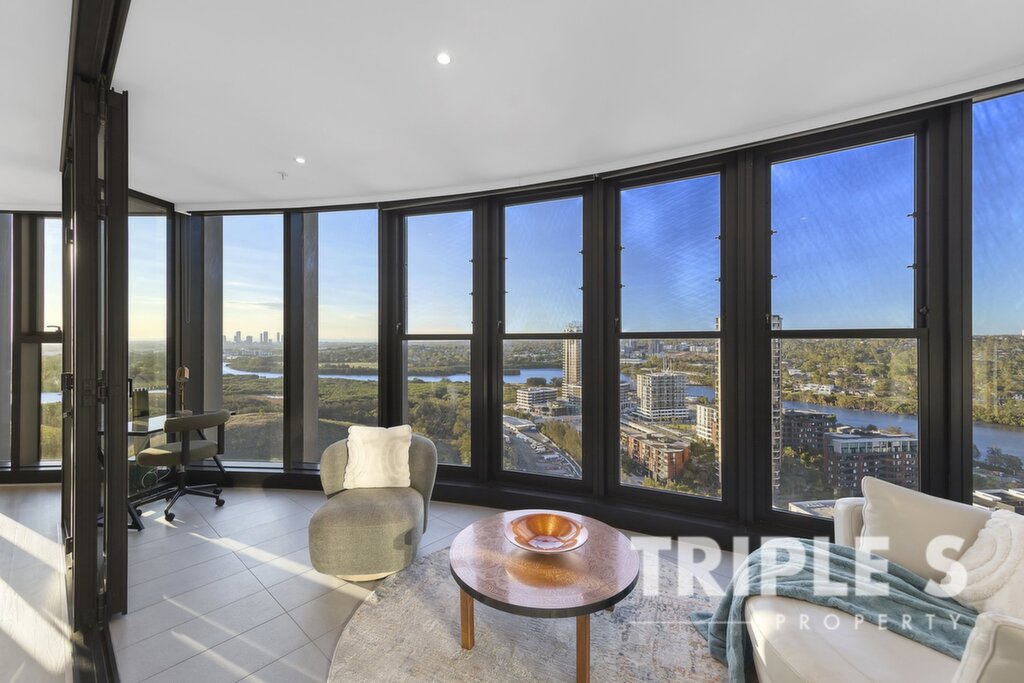 Panoramic views across parklands and the Parramatta River Full hybrid timber flooring installed in the living, dining and bedrooms.Ultra-private level 22 corner apartment with only one common wallFloor-to-ceiling, double-glazed windows capturing a spectacular outlookGenerous 133sqm internal area with multi-functional winter gardenBright northerly aspect with abundant natural lightSpacious open-plan living and dining with bi-fold doors extending to the enclosed balconyLarge contemporary kitchen with European appliances and pantryMaster bedroom with built-in wardrobe and luxurious ensuiteStylish guest bathroom, internal laundry and ample storageSplit-system air conditioning throughoutTwo side-by-side car spaces plus storage cage in secure basementExclusive residents-only rooftop gardenHealthy building fund and on-site building managerWalk to Marina Square Shopping Centre, ferry wharf, free community shuttle and Rhodes train station via footbridge