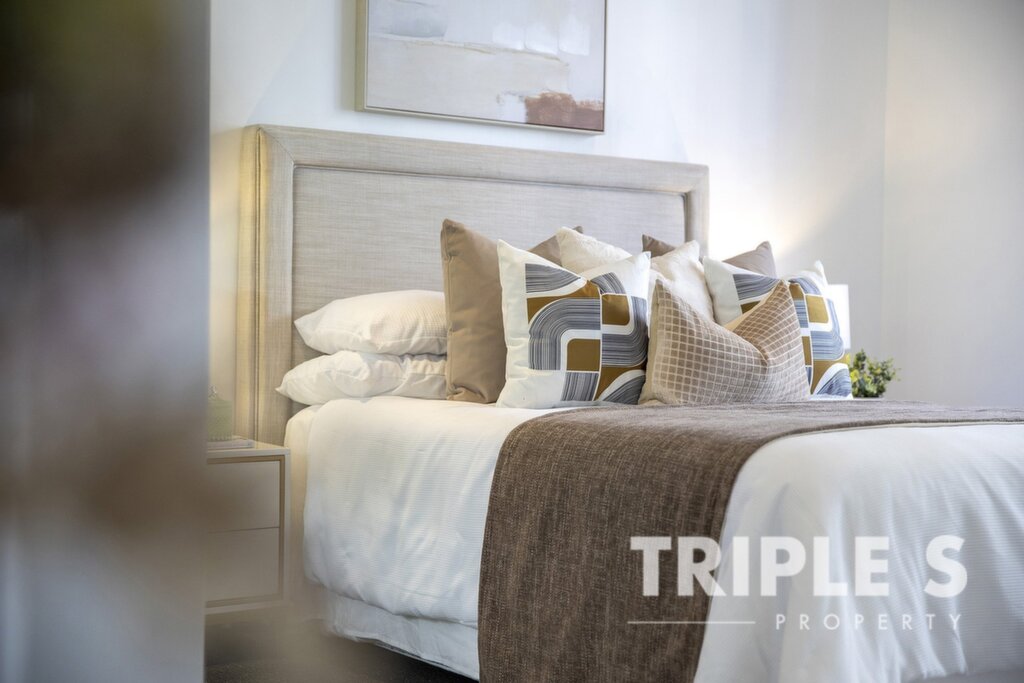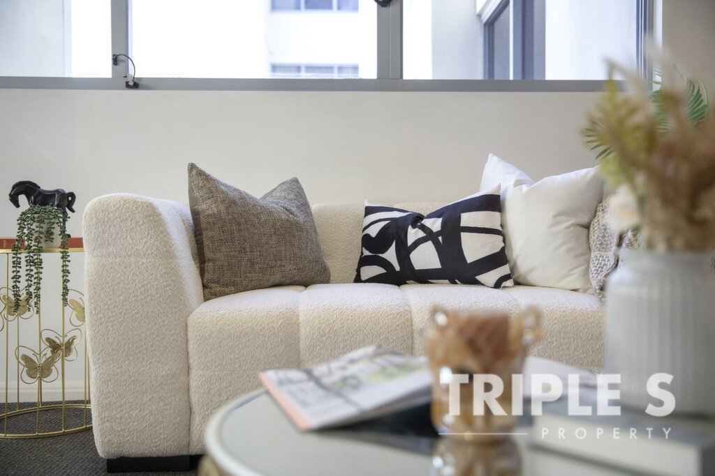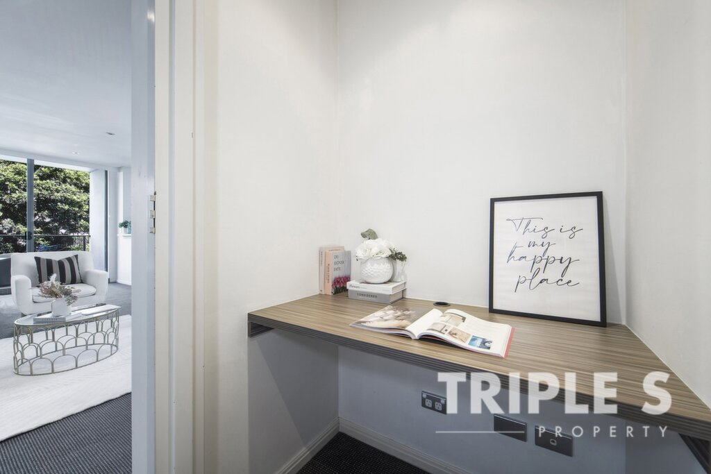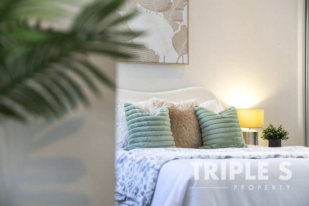 The apartment features air-conditioning throughout, a premium Caesarstone kitchen with stainless steel appliances, and thoughtfully separated bedroom and bathroom zones for enhanced privacy. Residents also enjoy beautifully landscaped communal areas and the convenience of onsite building management.