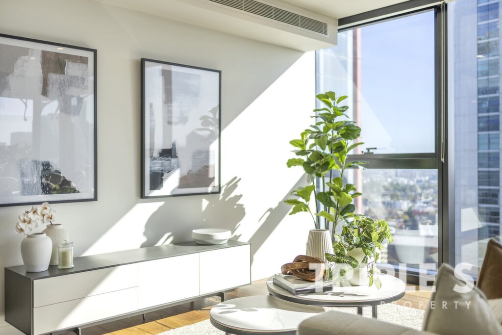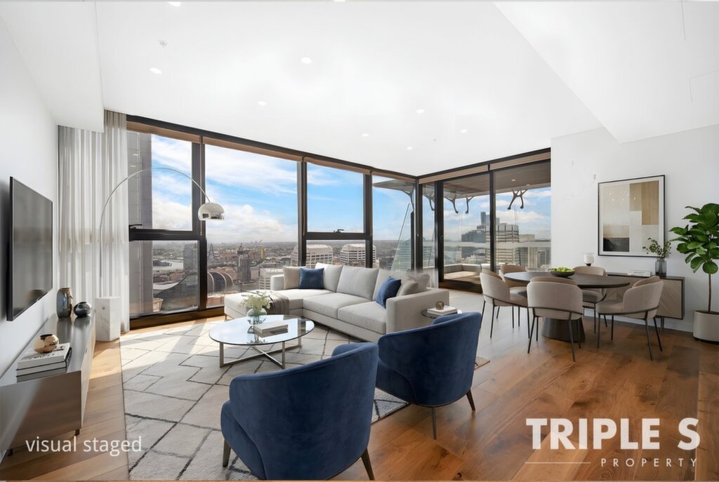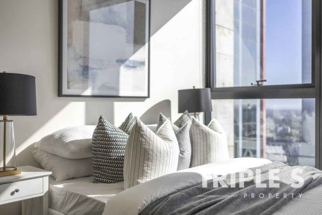 The 235-metre skyscraper will be the tallest residential tower in Sydney's CBD Expansive combined living and dining area, kitchen with built-in fridge Generous separated bedrooms with built-in and open views Gourmet kitchen with stone finished island bench and quality appliances. Stylish bathrooms Internal laundry with washing machine and dryer Resort facilities include outdoor heated swimming pool, sauna, gym, cinema. High security access, with a concierge desk in the lobby