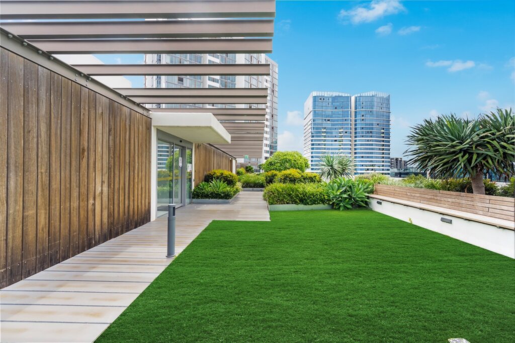 Grand lobby with on-site building manager at your service Rooftop sky garden surrounded with waterview Communal leisure area at sky garden with BBQ cooktop