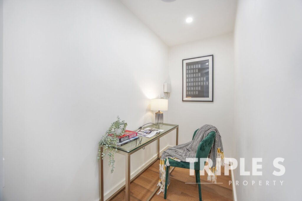 Urban open plan composition, generously spaced and light-filled High ceiling with floor-to-ceiling glass windows and doors Modern kitchen equipped with Miele appliances, including stovetop, oven, and dishwasher Spacious bedroom with built-ins Bathrooms in sleek and modern finishes Concealed internal laundry Ducted air-conditioning Security intercom system and car space