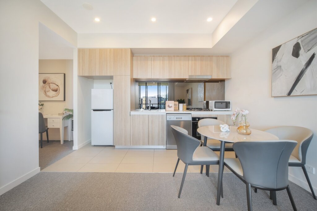 West aspect with sunlight beaming Sheltered entertainment balcony with a greenery overlook of the district Exceptional open-plan design with stylish fitouts Gourmet gas kitchen with stone kitchen & stainless steel appliances Generous bedroom with mirrored BIW Modern bathroom with sleek fixtures & mirrored storage cupboard Concealed laundry & plentiful internal storage Study nook for home office Ducted air-conditioning; Security video intercom system