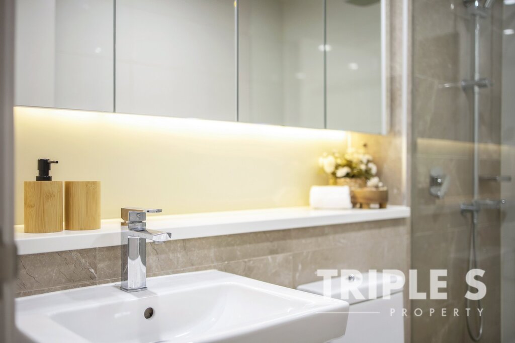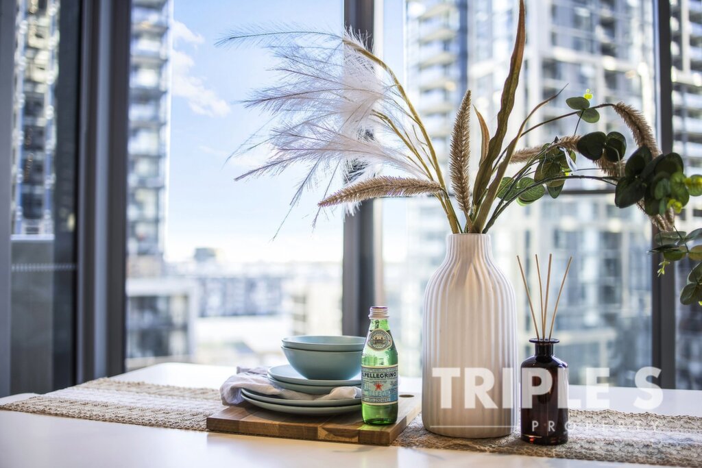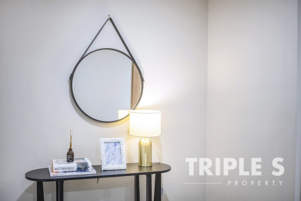 Massive sunroom with retractable door for space alterations and entertainment Spacious open-plan interiors with neutral-toned superb finishes Gourmet kitchen with stonetop bench & extra legroom as convertible dining bar Executive bedroom with mirrored built-in wardrobe Modern bathroom with shiny sleek fixtures and a frameless shower Concealed internal laundry & plentiful storage cupboard Air-conditioning; Security video intercom system; NBN internet connection One allocated underground carpark and storage cage